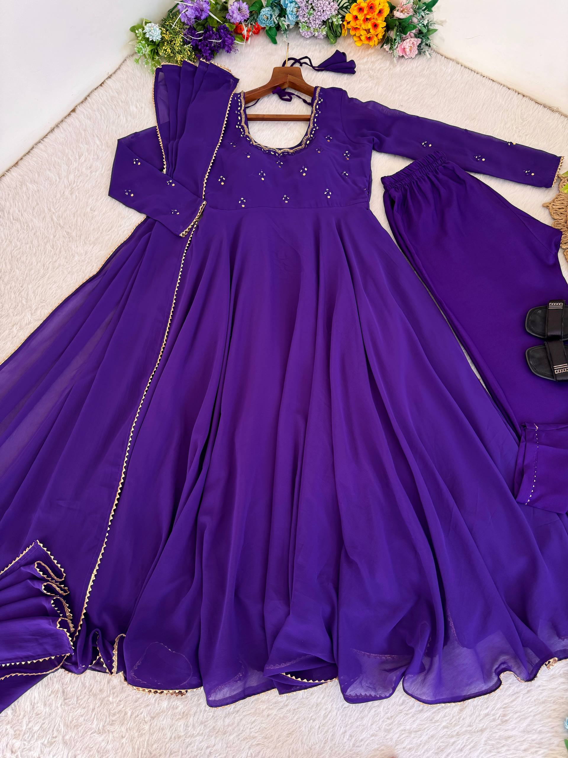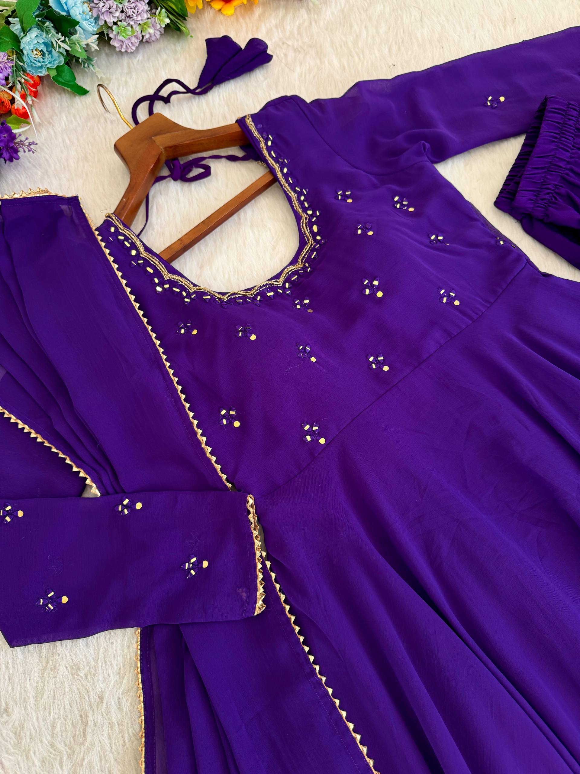 👗Gown Febrics Georgette Heavy Quality Fabric With Hand Mirror 🪞 Embroidery, Full Sleeve Embroidery
