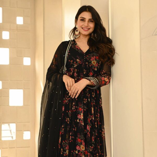 *Anarkali* – Pure Georgette printed Anarkali suit of huge flair with Designer Lace Border 🌸 *Dupatta* – Pure Georgette 2mtr Dupatta with Lace Border *Pant* – Butter cotton pant with lace fully Stitched