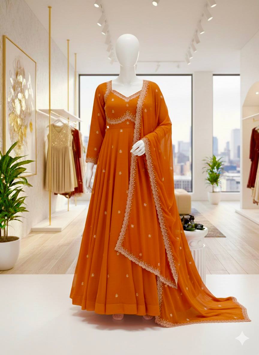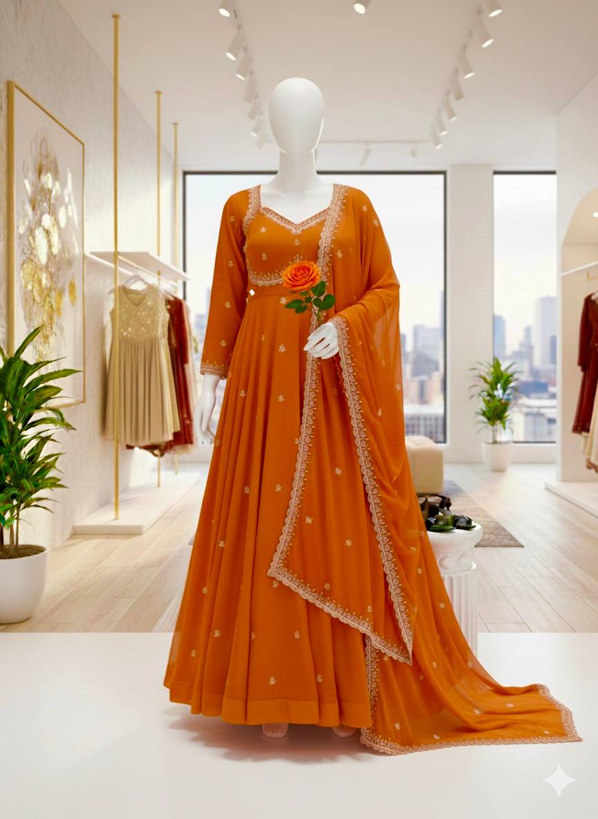 👗💥💥Presenting By New Party Wear Look Fox Gerorrget Gown With Dupatta , pant , 3MM Rembo sequence with Zari