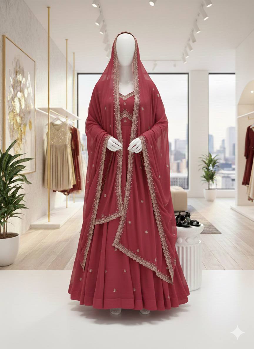 Presenting By New Party Wear Look Fox Gerorrget Gown With Dupatta , pant , 3MM Rembo sequence with Zari