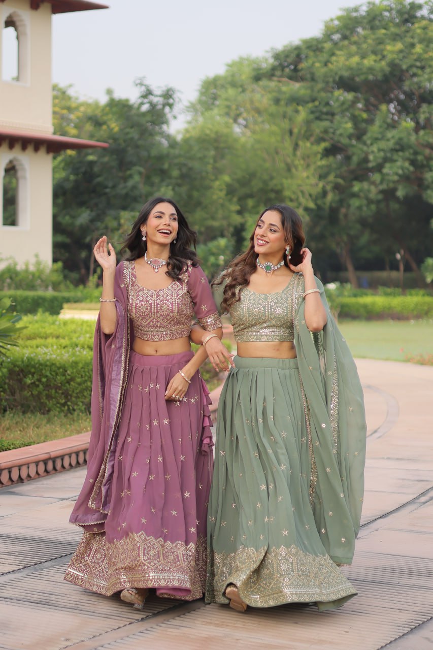 👉🏻 FABRICS & WORK :- Faux Georgette With Sequins & Zari Multi Embroidered work